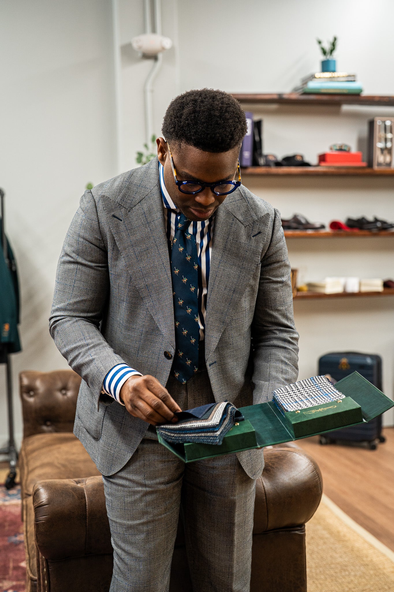 This is where the searching and curation of the suit begins, textures, colors, buttons, ties, style. This is where your style begins to take shape.